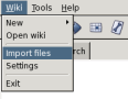 This option is handy if you want to import some pages from another wiki database file, but can also be nice to import pages from older Wixi versions. Go to the menu Wiki --> Import files and select the t2t files you want to import.