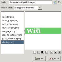 The image browser can help you finding and adding images for your page. All images are placed in the image directory. If you select an image outside the image directory, it will copy the file to this directory.